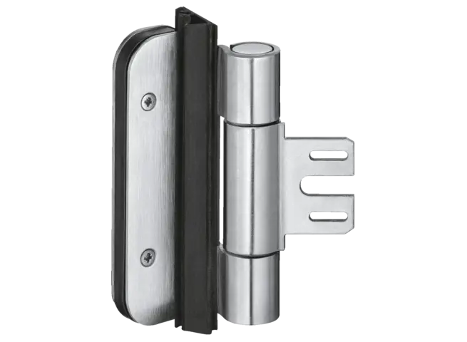 VARIANT Compact es más adecuado para la renovación de puertas modernas. Con el soporte de ajuste 3D colocado en la puerta, los marcos de acero existentes se pueden montar con una construcción de marco muy estrecha y seguir utilizándose. Al mover la bisagra en la puerta, la renovación es económica y ahorra tiempo, permitiendo el uso sensible de los componentes existentes.