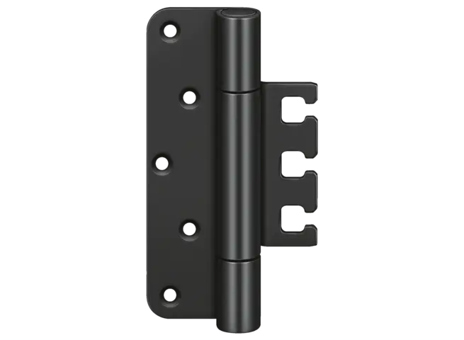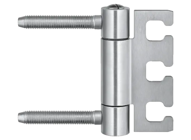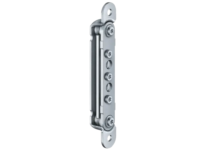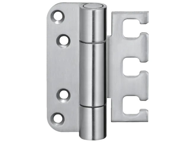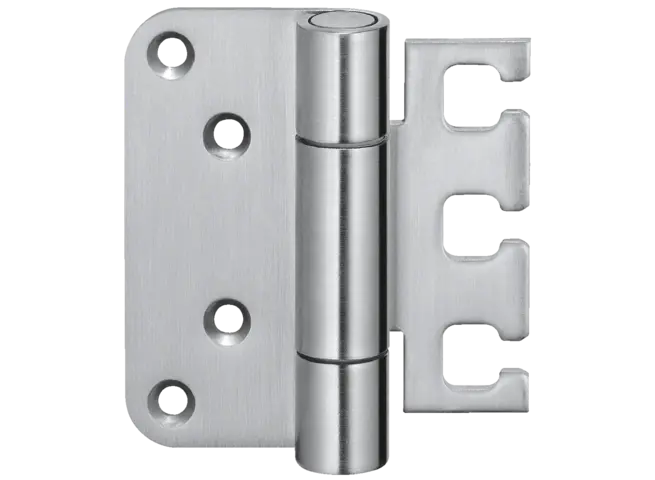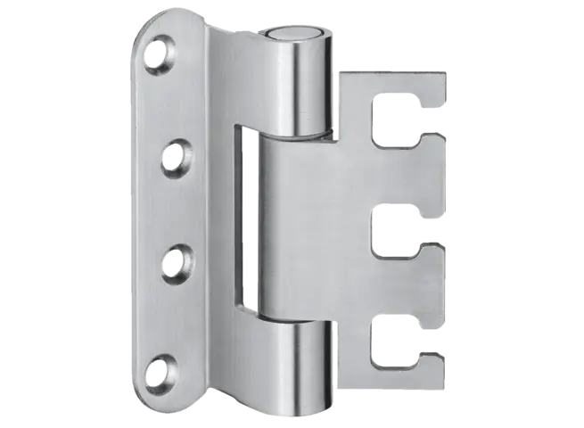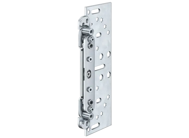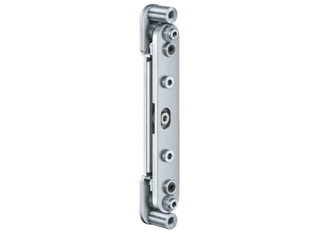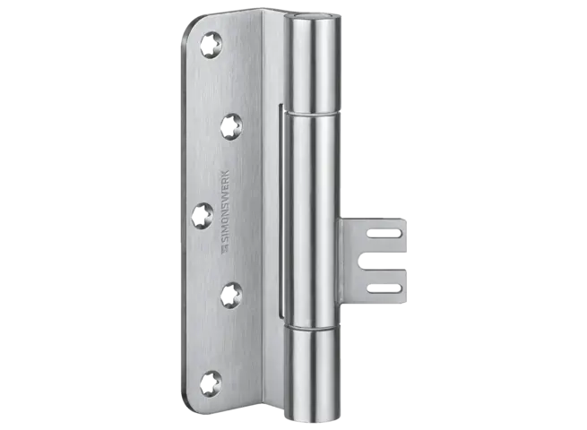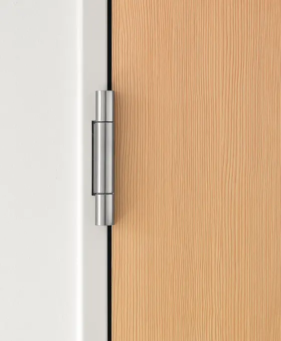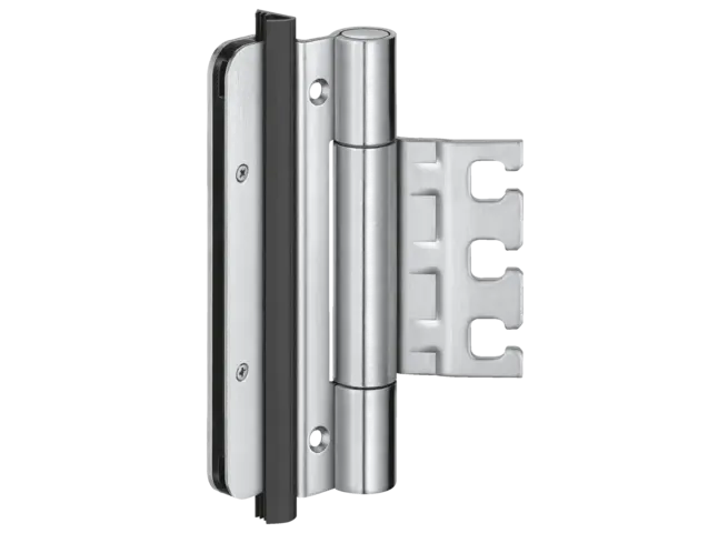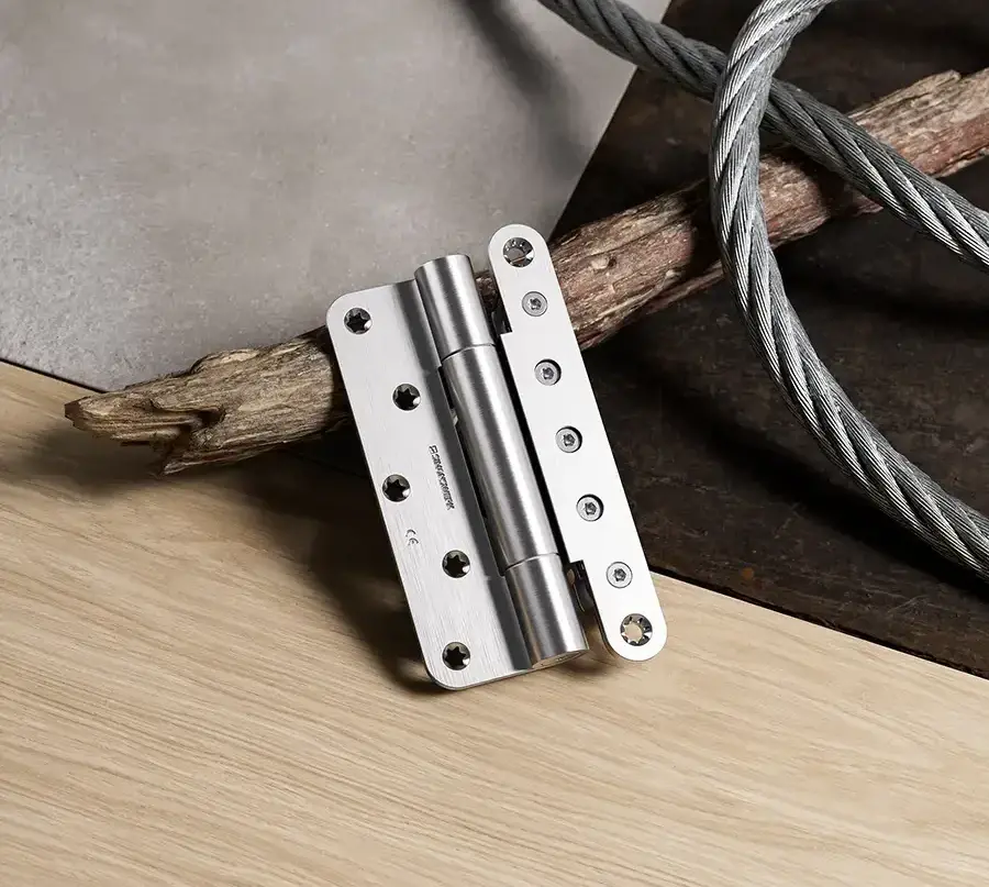 La bisagra de servicio pesado muestra la precisión de la marca. Impresiona con sofisticadas bisagras de pivote exterior, capaces de soportar cargas de hasta 400 kg y resalta la tendencia arquitectónica de la reducción a lo esencial.